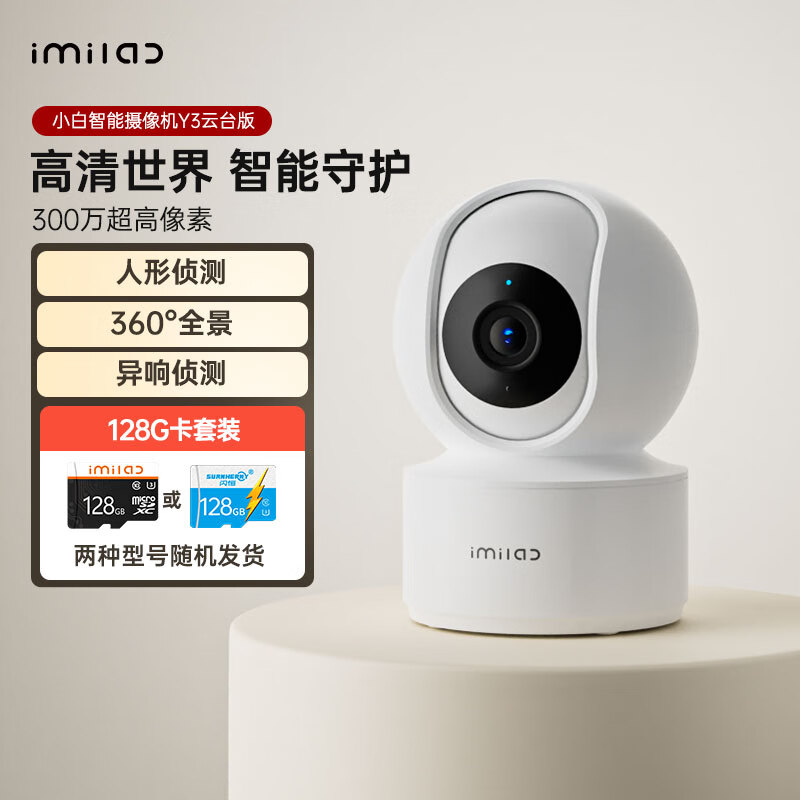 小白 Y3云台+128G卡 摄像头家用无线监控器网络摄像机300W像素2K分辨率360度全景视角红外夜视双向通话价格:149.00元!