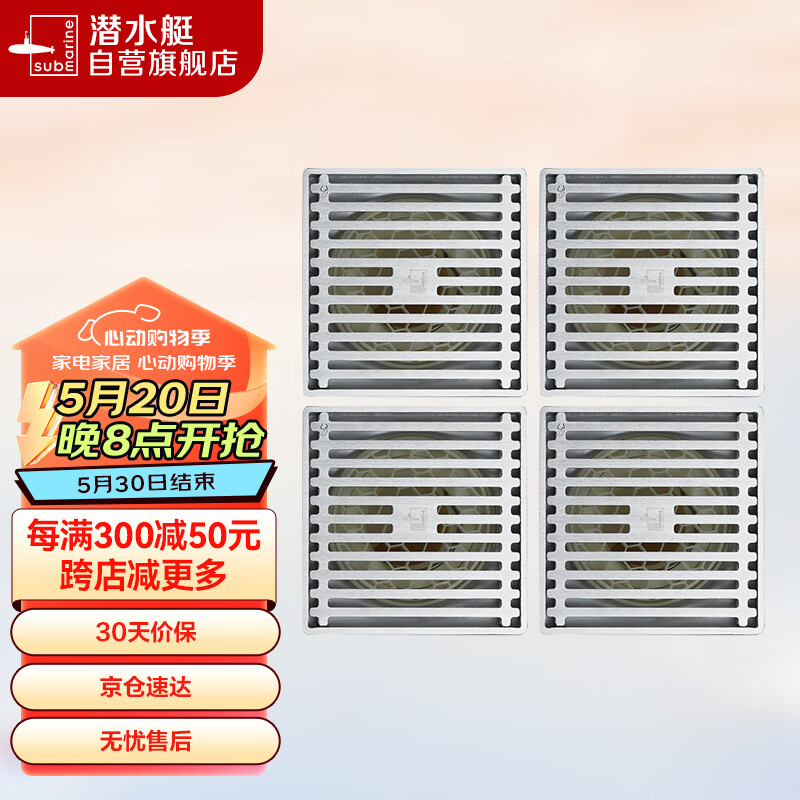 潜水艇(Submarine)不锈钢防臭地漏套装50管径大排量四个装淋浴四防地漏 超值套装价格:348.00元!