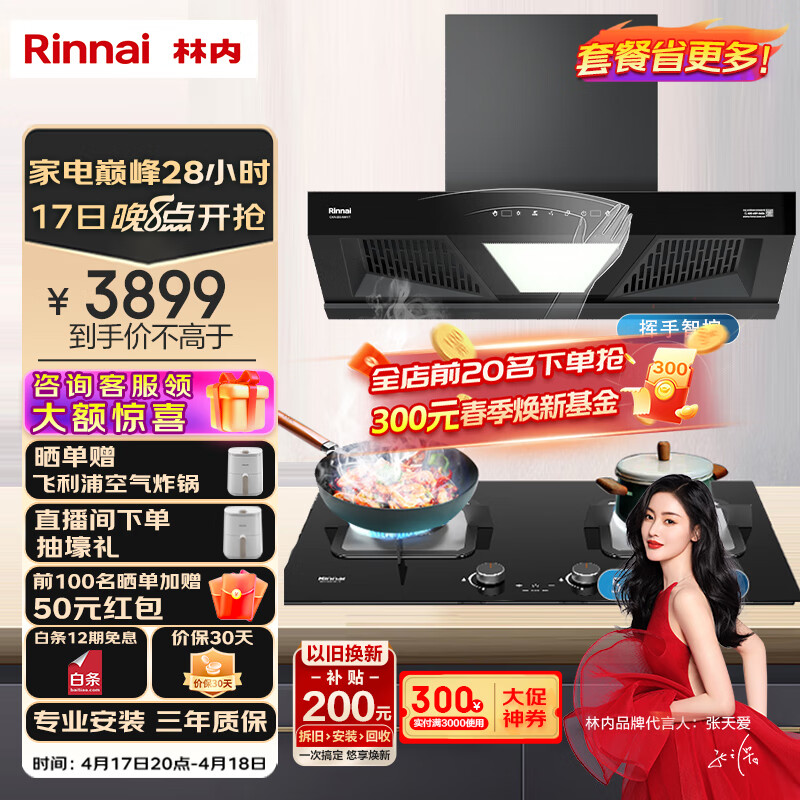 林内(Rinnai)【哪吒系列】家用烟灶套装23立方挥手智控自清洗欧式油烟机5.2kW可调节底盘定时灶NM11T+2E07MTX价格:3898.00元!
