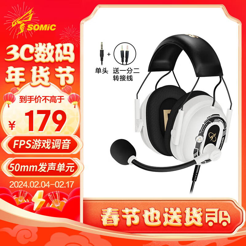 硕美科(SOMIC)G936赛事版游戏耳机头戴式电竞FPS降噪CSGO吃鸡听声辩位有线电脑耳麦价格:179.00元!
