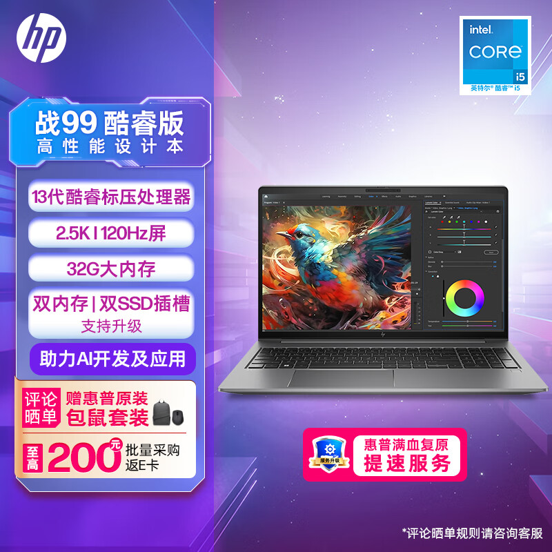 惠普(HP)战99 23款15.6英寸高性能笔记本AI电脑设计师本工作站13代酷睿?i5-13500H 32G1T RTX4050 2.5K价格:6799.00元!