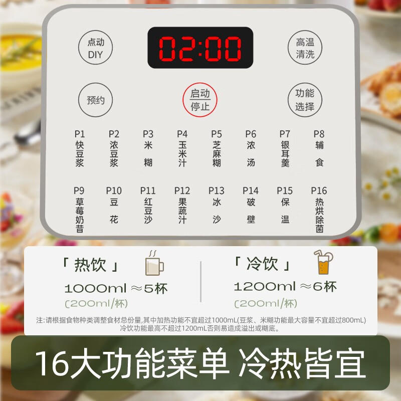 功能:破壁磨粉,低音降噪,热烘除菌