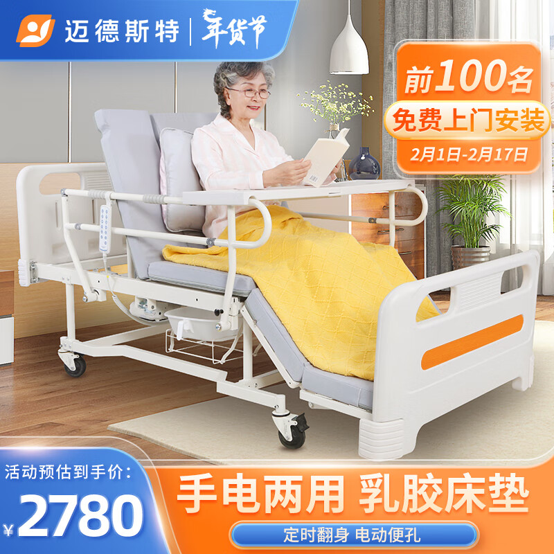 迈德斯特电动护理床家用老人瘫痪床可大小便多功能全自动智能翻身医疗医用病床病人专用床E202【乳胶床垫】价格:3780.00元!