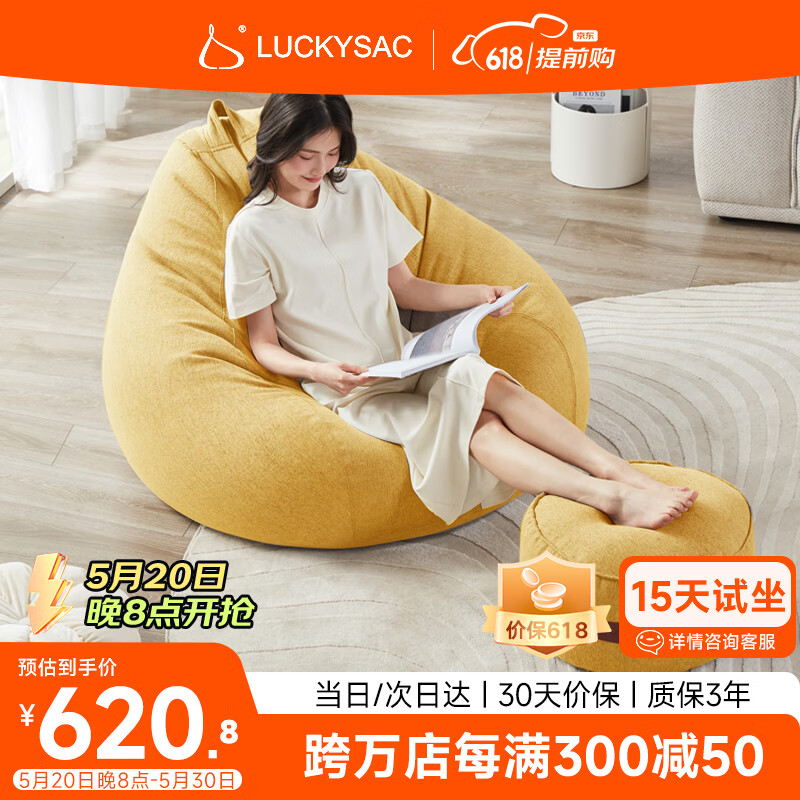 LUCKYSAC懒人沙发豆袋EPP 单人布艺客厅卧室阳台小沙发 尊享款一套玉米黄价格:699.00元!