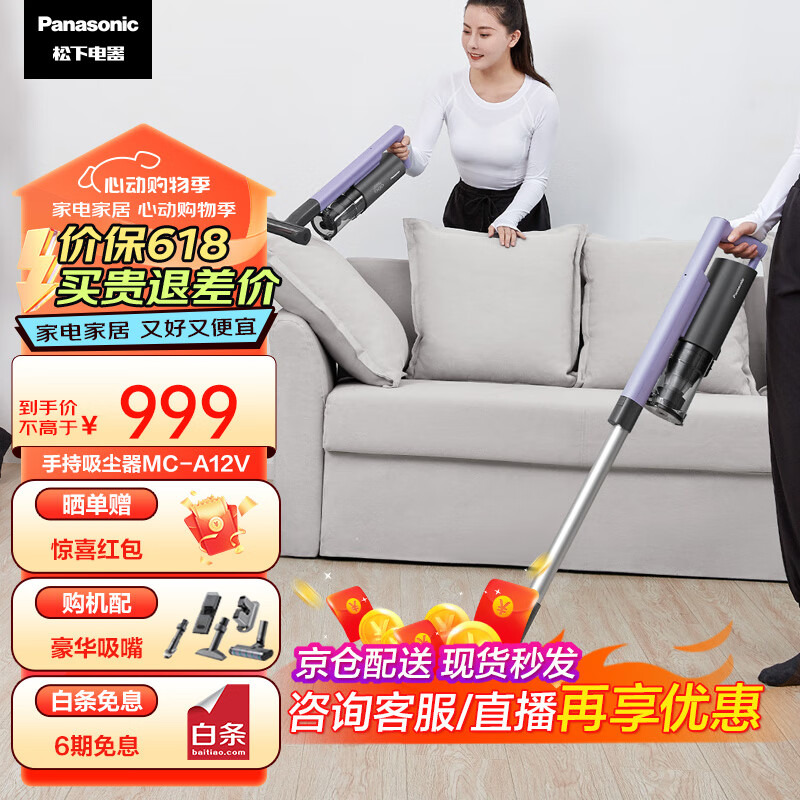 松下(Panasonic)A系列 无线手持家用吸尘器 擦地机 拖地机 吸拖一体吸尘器 防缠绕MC-A12V价格:999.00元!