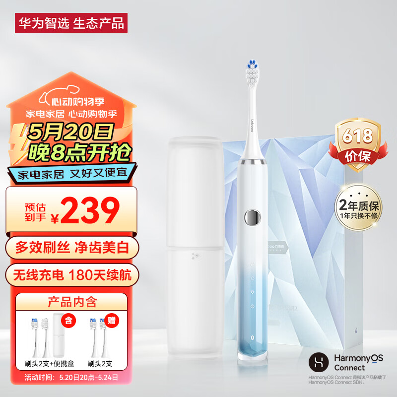 华为智选 力博得电动牙刷 智能牙刷 送男友送女友礼物 长续航 牙医推荐 冰山款 冰晶蓝(支持鸿蒙智联)价格:239.00元!