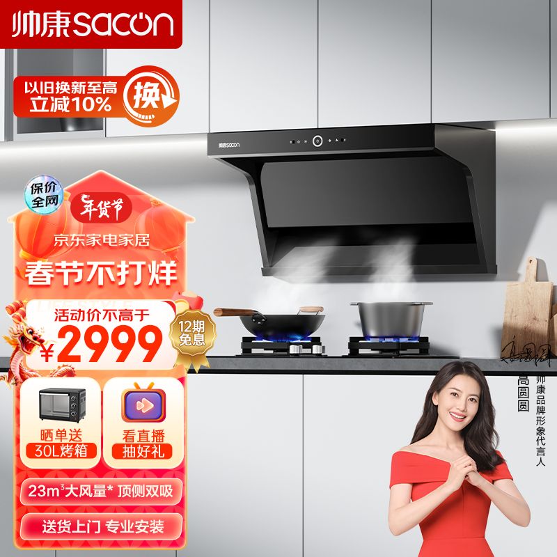 帅康(Sacon)抽油烟机顶侧双吸油烟机 抽油烟机燃气灶套装 家用23大风量烟灶套装7字机 Y8272+61C天然气价格:2999.00元!
