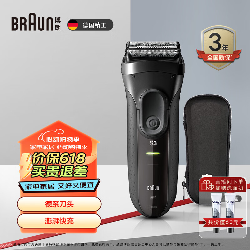 博朗(BRAUN)经典3系电动剃须刀刀头往复式刮胡刀电动男士男朋友生日礼物送老公送男友价格:274.00元!