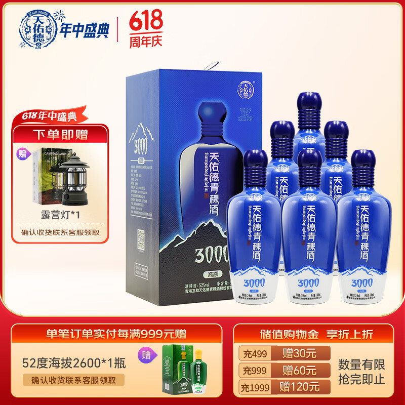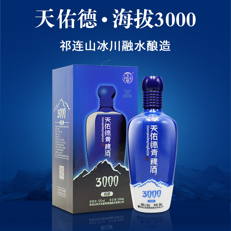 天佑德 海拔3000 清香型白酒 52度 500ml*6瓶 整箱装【青海青稞酒】价格:788.00元!