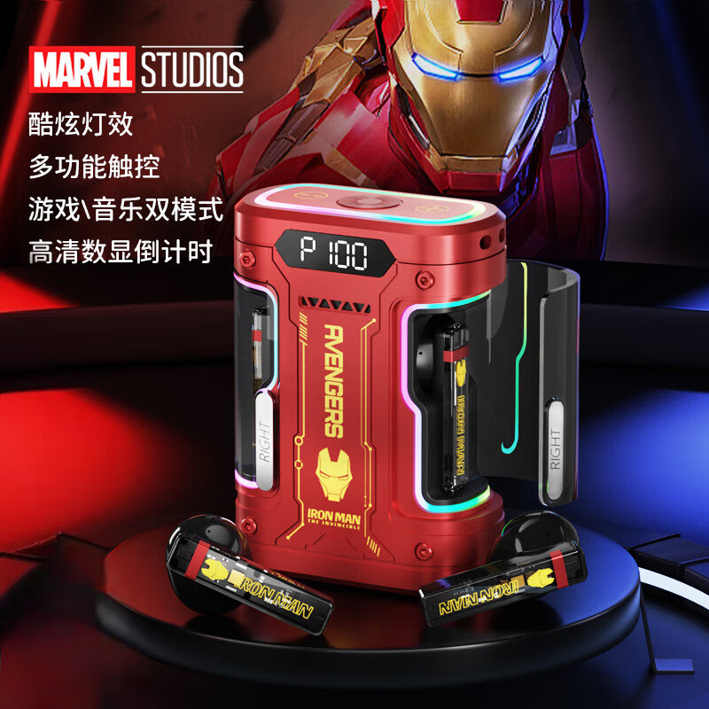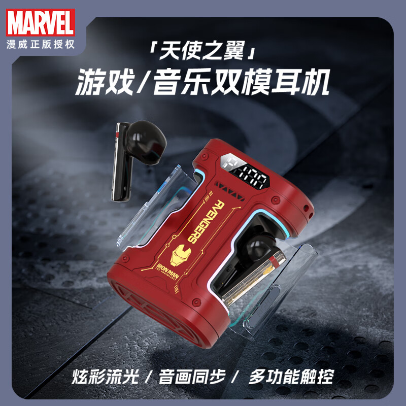 迪士尼漫威无线游戏蓝牙耳机半入耳式男生电竞吃鸡低延迟机甲音效适用于华为苹果红魔IQOO MV10钢铁侠红价格:229.00元!
