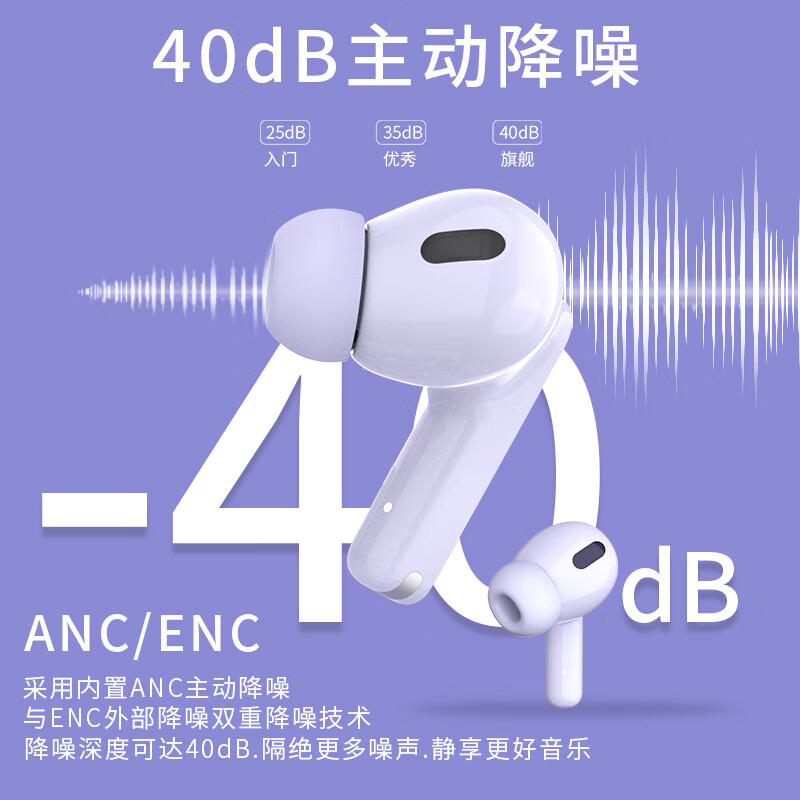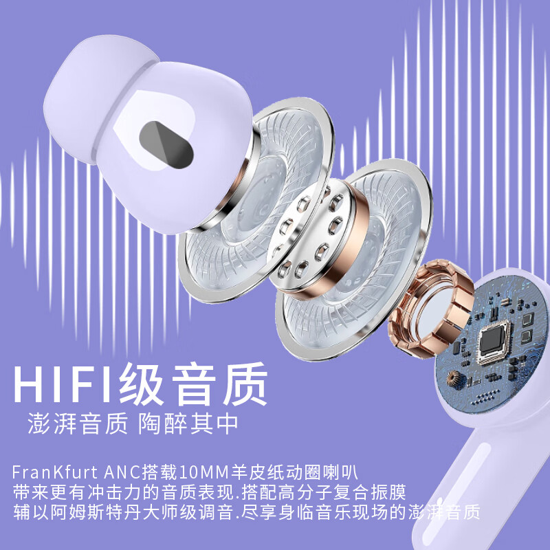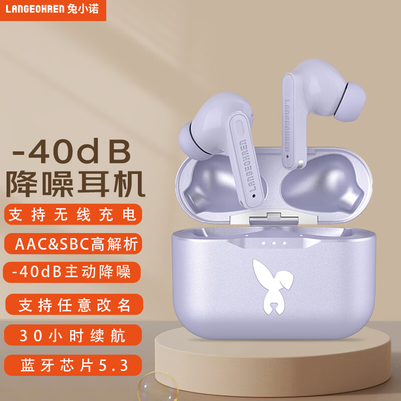 兔小诺(LANGEOHREN)主动降噪 入耳式真无线蓝牙耳机 通话降噪 通用苹果华为小米手机 Frankfurt ANC 梦幻紫价格:215.00元!