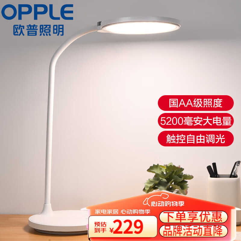 欧普(OPPLE)国AA级充电护眼减蓝光阅读触控调光儿童学生学习台灯元宸价格:229.00元!