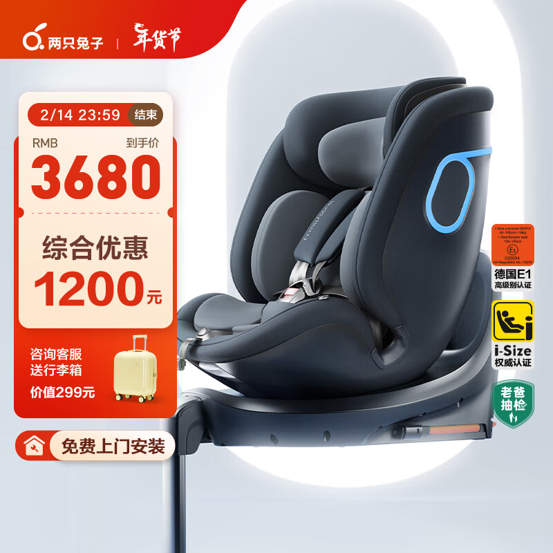 两只兔子求知2pro智能通风车载婴儿童座椅0-4-12岁宝宝汽车用 极空黑价格:4880.00元!