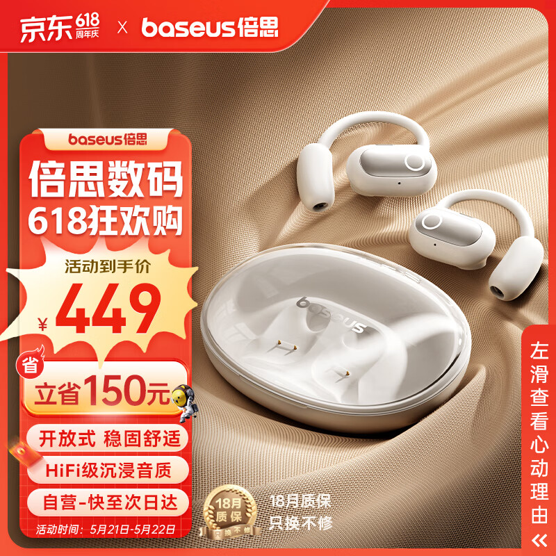 倍思eli 蓝牙耳机挂耳式开放式骨传导概念舒适不入耳运动跑步降噪商务适用华为小米 白价格:449.00元!