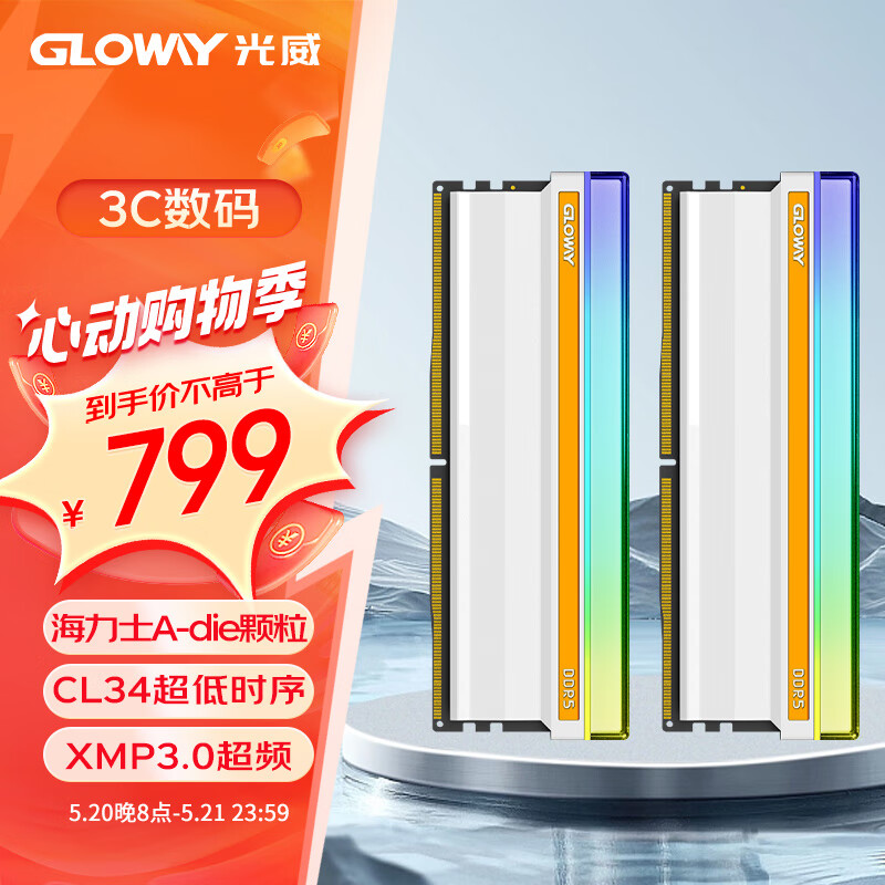 光威(Gloway)32GB(16GBx2)套装 DDR5 6800 台式机内存条 神策RGB系列 海力士A-die颗粒 CL34 助力AI价格:799.00元!