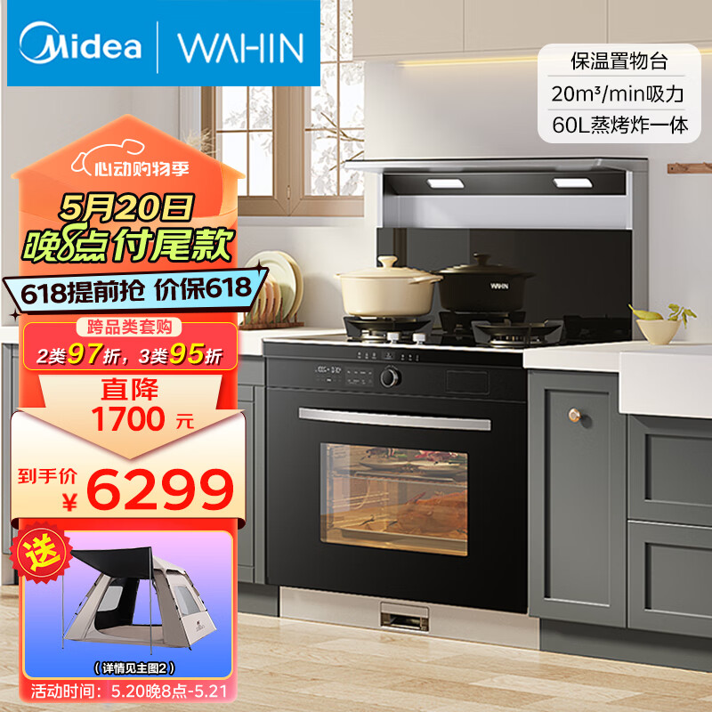 美的(Midea)出品 华凌小暖阳蒸烤炸集成灶 保温置物台 抽油烟机 燃气灶 60L去残水蒸烤箱 WX6S天然气价格:6599.00元!
