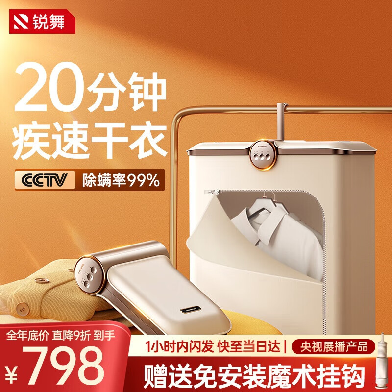 锐舞(RANVOO)【闪烘速干】烘干机家用小型可折叠烘干衣机便携干衣服神器宝宝内衣裤消毒杀菌【除菌柔烘】价格:886.60元!
