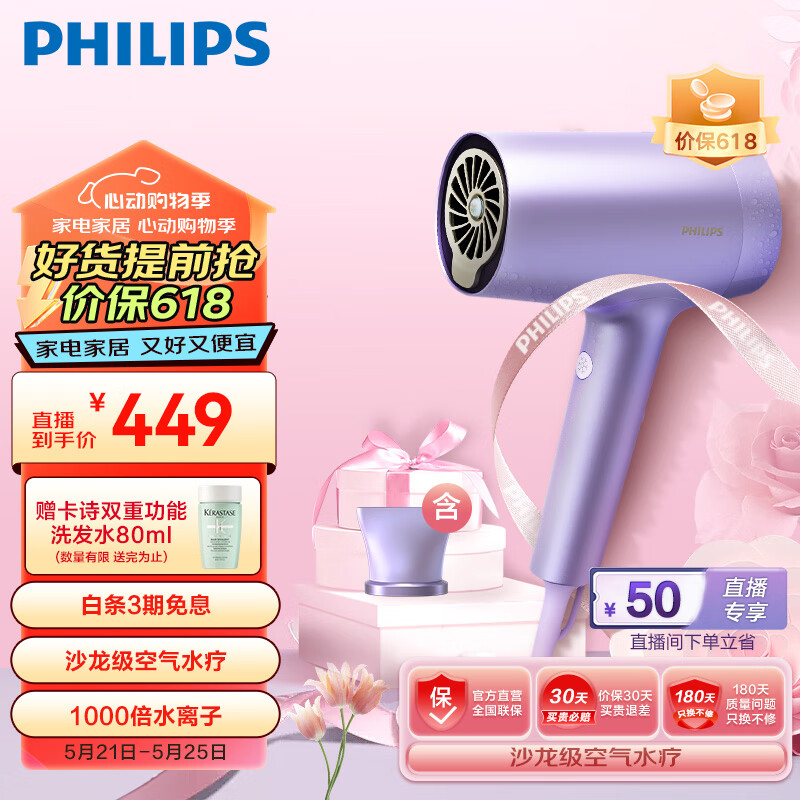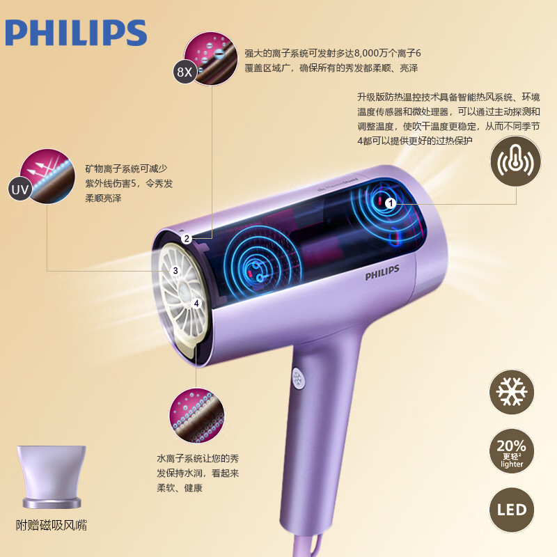 飞利浦(PHILIPS)电吹风机 7系水光机 2亿级负离子 1千倍水离子 护发高速 家用大功率价格:499.00元!