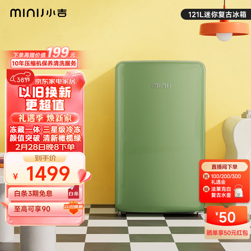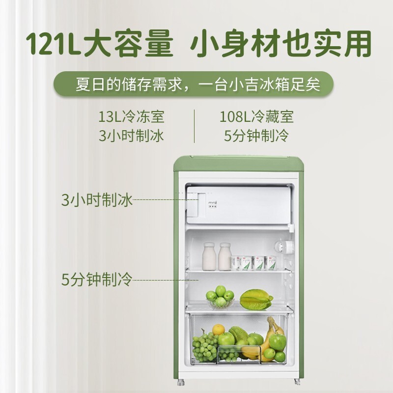小吉(MINIJ)迷你复古小冰箱冷冻冷藏一体单开门冰箱小型家用租房宿舍办公室客厅冰箱礼物节能低噪BC 121MCG价格:1499.00元!
