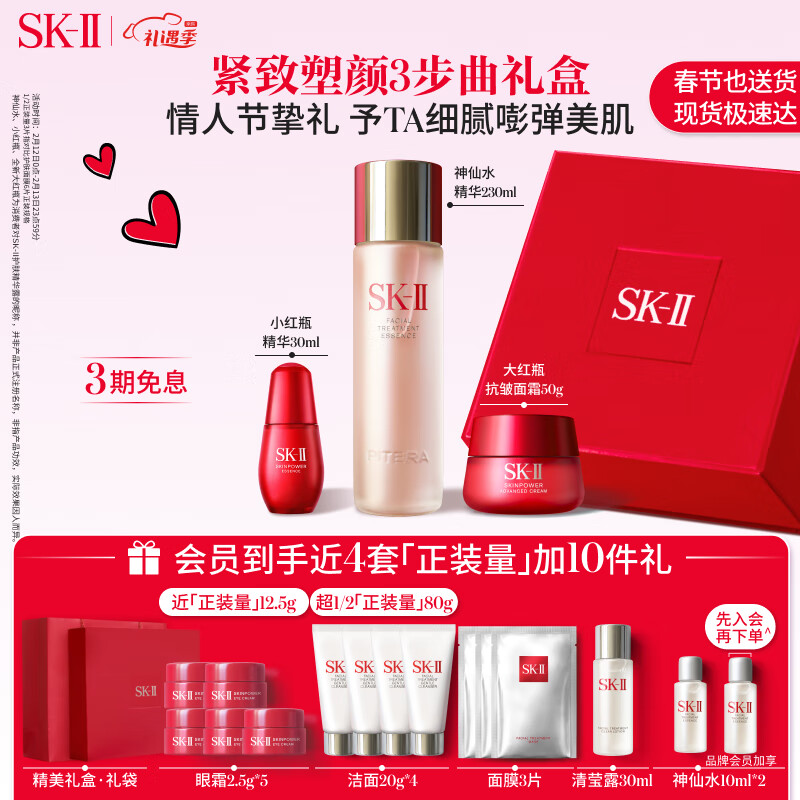 SK-II细腻3步曲(神仙水230ml+新大红瓶面霜50g+小红瓶30ml)护肤品套装价格:3700.00元!