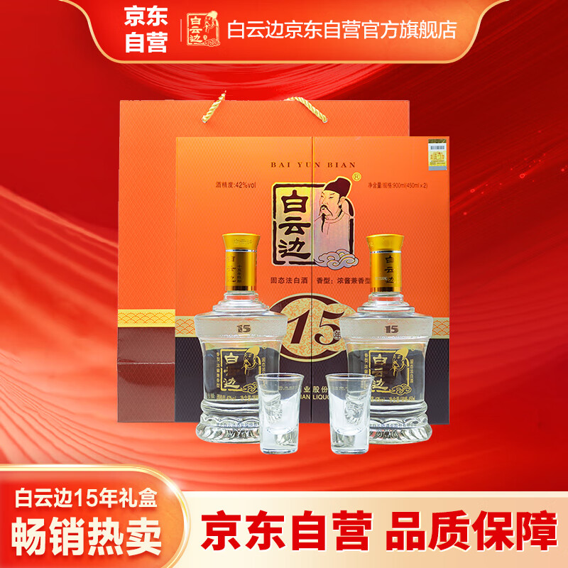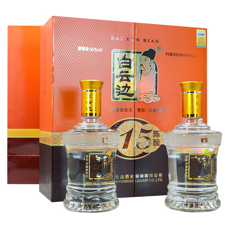 白云边 白酒 十五年陈酿 浓酱兼香型 42度 450ml*2瓶 礼盒装价格:288.00元!