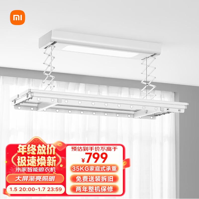 米家智能晾衣机 电动晾衣架无线遥控升降阳台伸缩晾衣杆 小米价格:799.00元!