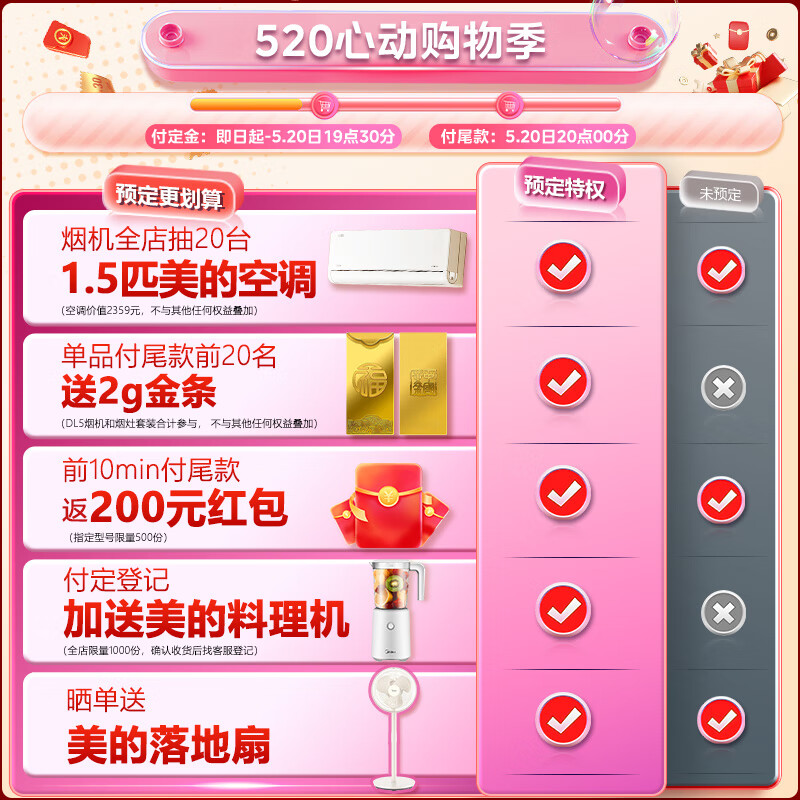 美的(Midea)抽油烟机 5.2kW燃气灶具家用顶侧双吸24风量大吸力变频大吸力 烟灶联动套装DL5+Q529天然气价格:3699.00元!