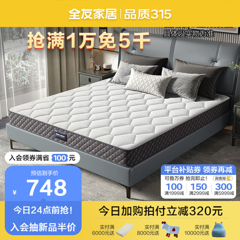 全友家居 床垫抗菌面料软硬两用椰棕弹簧床垫105171价格:1068.57元!