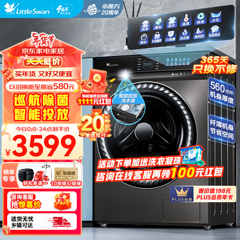 小天鹅(LittleSwan)滚筒洗衣机全自动10KG除菌螨智能投放UDC净泡洗智能WIFI水魔方护衣护色1.1洗净比小钢炮VC189MUIT价格:3699.00元!