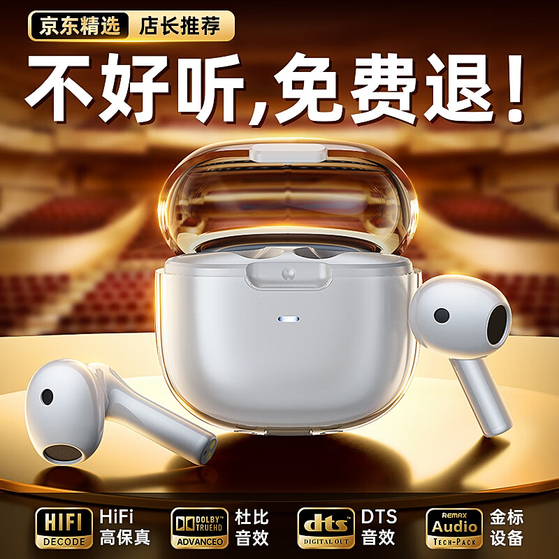 REMAX睿量【大师级调音】蓝牙耳机半透明真无线半入耳高音质降噪运动跑步游戏音乐适用小米苹果华为 白价格:129.00元!