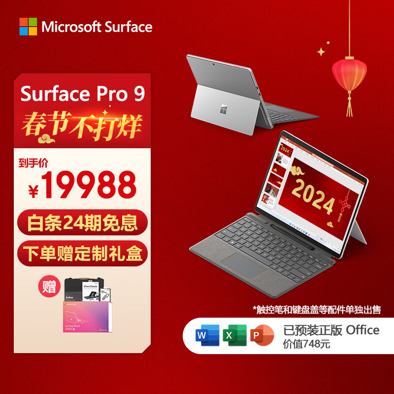 微软Surface Pro 9 二合一平板电脑 i7/32G/1T亮铂金 13英寸高刷触控 年货节办公 学习 笔记本电脑价格:19988.00元!