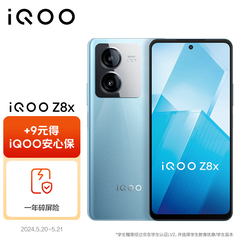 vivo 【iQOO安心保-一年碎屏保】 iQOO Z8x 8GB+128GB 星野青 6000mAh巨量电池 骁龙6Gen1 5G手机价格:1308.00元!