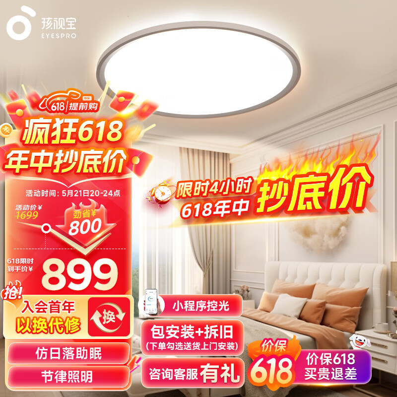 孩视宝卧室护眼吸顶灯全光谱客厅书房儿童房防蓝光频闪led灯具AH34-T价格:1699.00元!