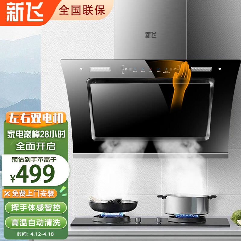 新飞油烟机侧吸式家用750宽抽油烟机双电机大吸力排烟机五健触摸体感自动清洗厨房橱柜CXW-280-B价格:499.00元!