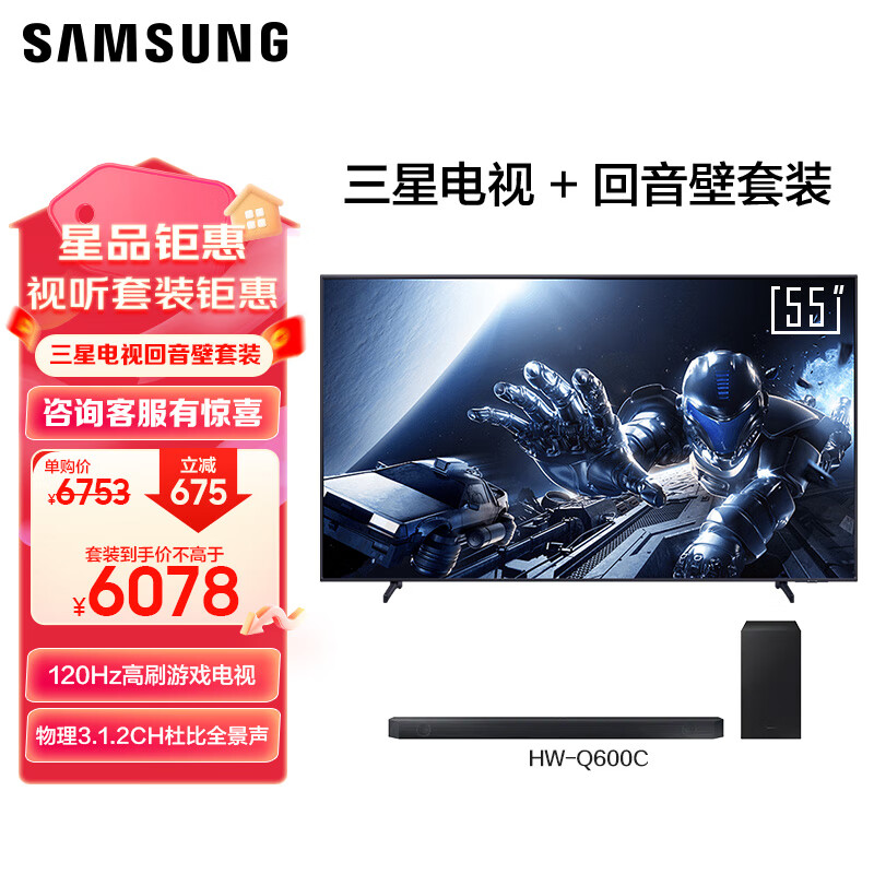 三星(SAMSUNG)55QX3C+Q600C全景声回音壁 杜比全景声 DTS:X 家庭影院 电视音响回音壁 专业游戏新体验价格:6078.00元!