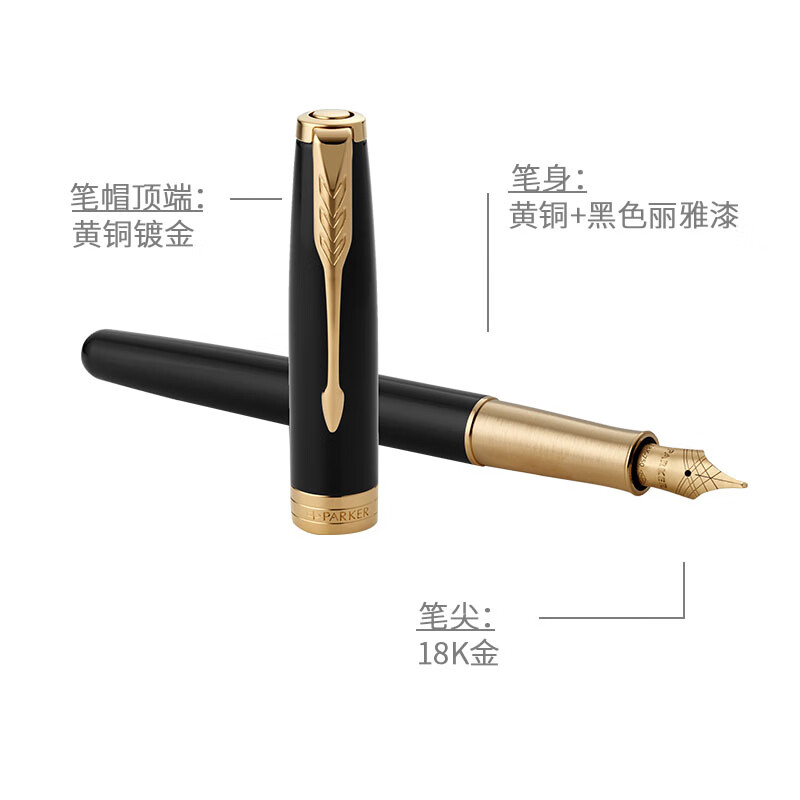 派克(PARKER)高端钢笔礼盒 签字笔 商务办公男女生日礼物练字文具套装 卓尔丽雅黑金夹墨水笔+喜乐礼盒价格:3430.00元!