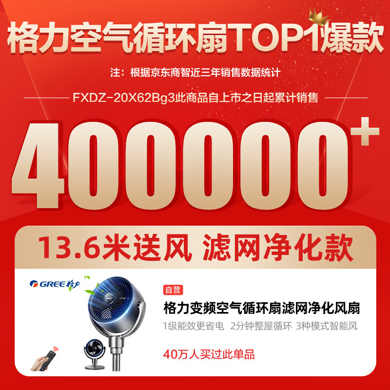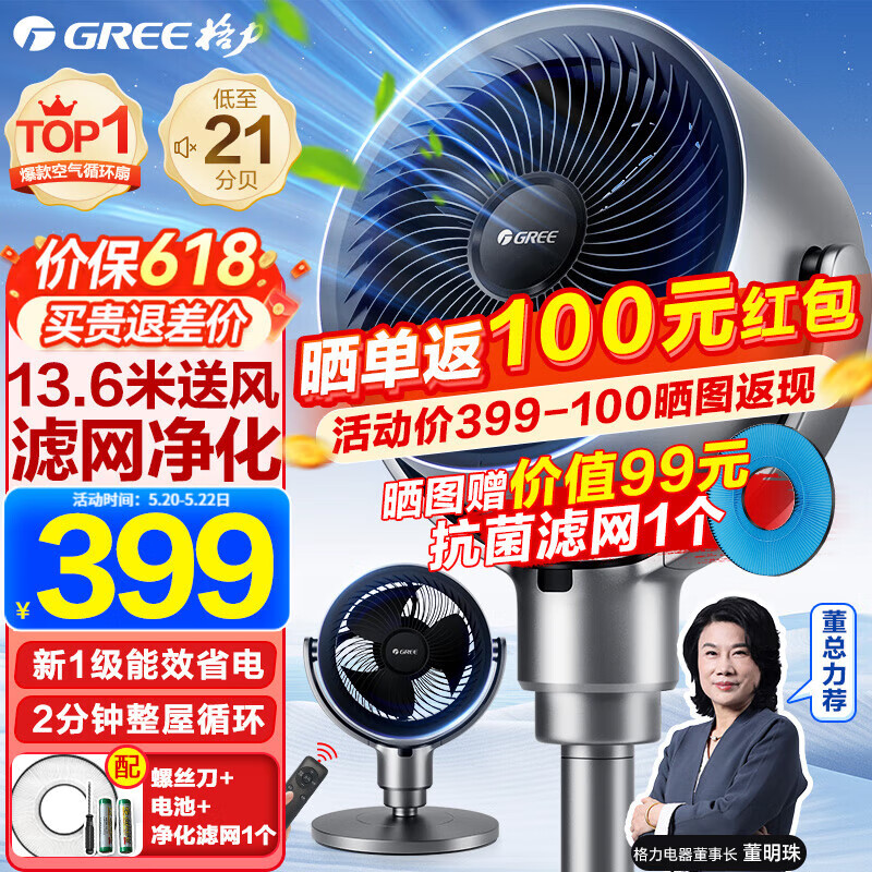 格力(GREE) 空气循环扇直流变频遥控电风扇家用摇头电扇涡轮换气扇循环对流风扇落地扇 滤网净化空气升级款FXDZ-20x62Bg3价格:499.00元!