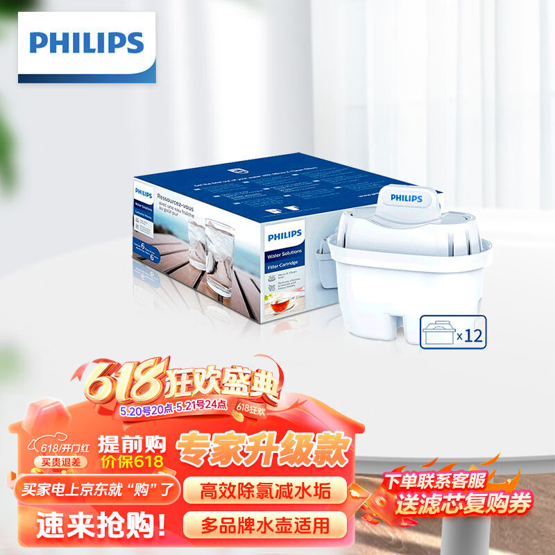 飞利浦(PHILIPS)家用净水壶滤芯 滤水壶净水器去除水垢专家版滤芯AWP210 12枚装价格:279.00元!