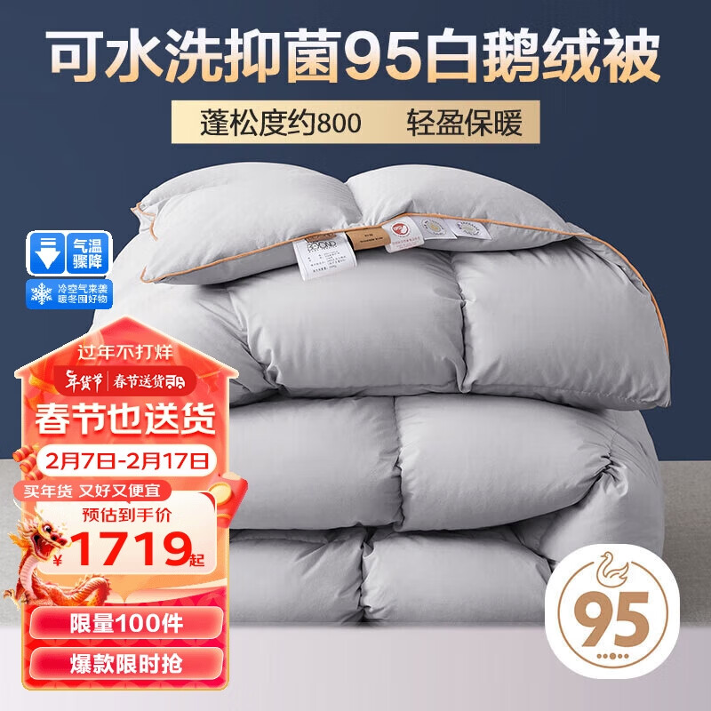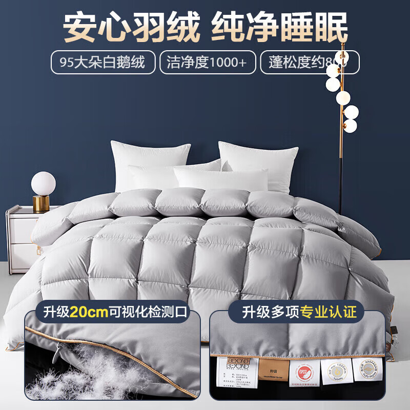 博洋家纺 曛暖 抑菌95%白鹅绒羽绒被 冬被(1000g填充)220*240cm价格:2619.00元!