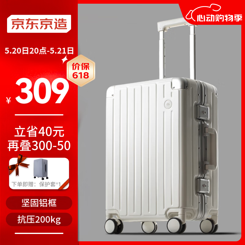京东京造无界铝框20英寸行李箱男女 旅行箱密码箱登机皮箱学生 云海白价格:399.00元!