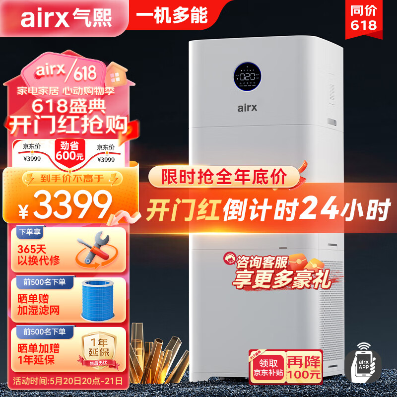 airx气熙 空气净化无雾加湿器大容量母婴级大加湿量除甲醛净化加湿除菌一体机全屋净化四季可用A9h价格:3599.00元!