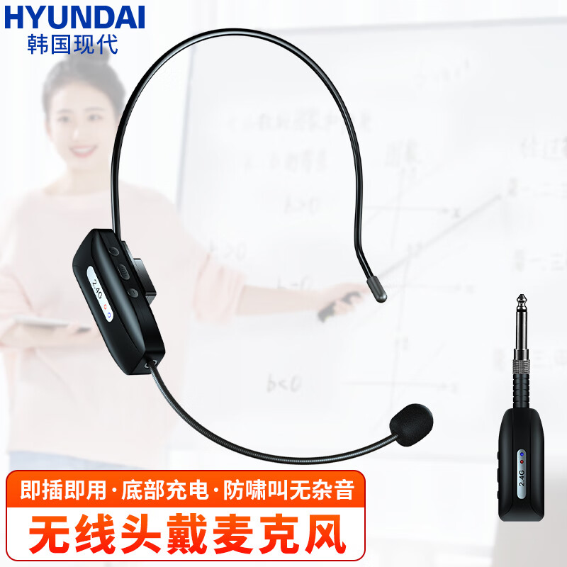 HYUNDAI XD12 头戴式无线麦克风话筒扩音器网课教学导游无线耳麦耳咪拉杆音响音箱收音麦无线话筒一拖一价格:129.00元!