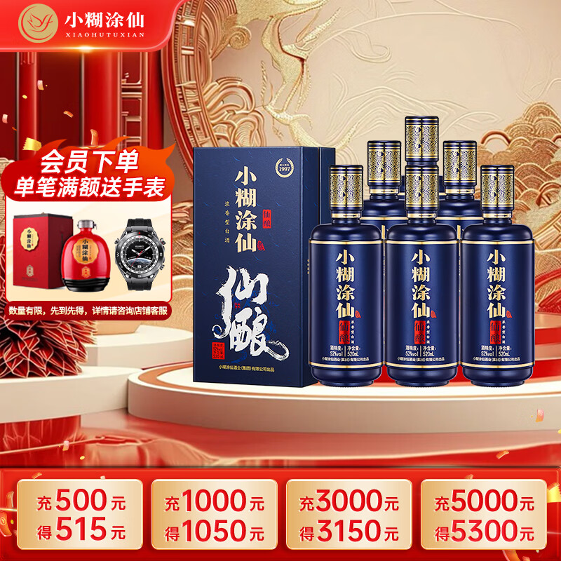 小糊涂仙 仙酿 浓香型白酒 52度 520ml*6瓶 整箱装 贵州 送礼佳品价格:2208.00元!