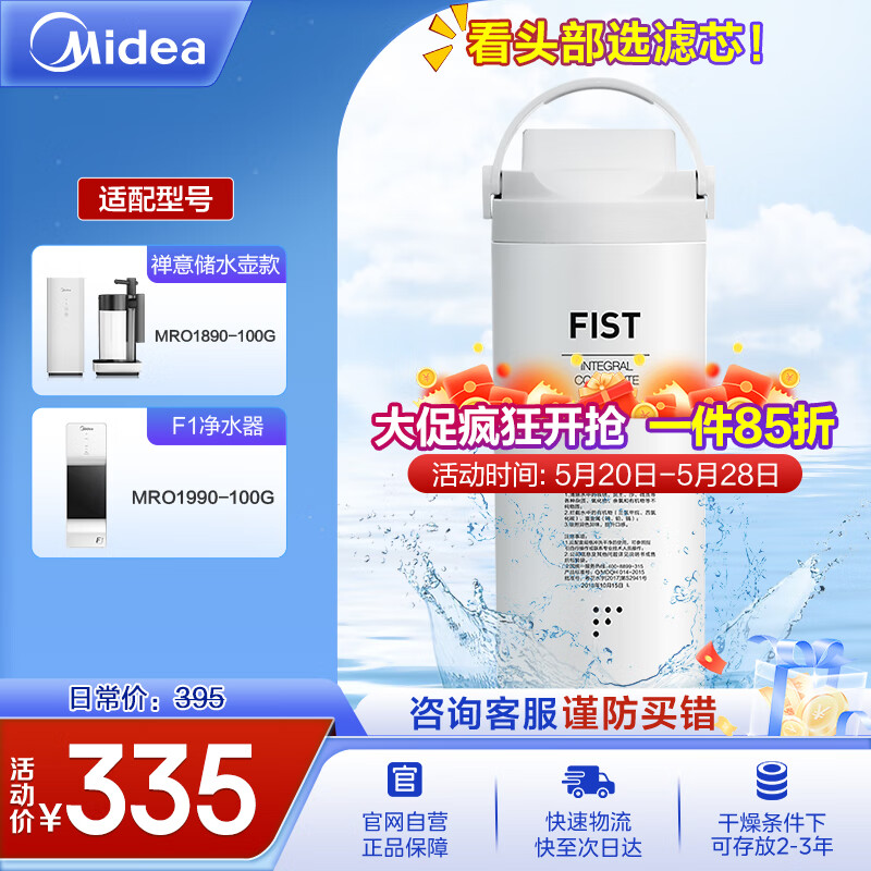 美的净水器滤芯—适用于禅意台面储水壶款(MRO1890-100G)、F1(MRO1990-100G)净水机通用一体芯系列价格:335.00元!