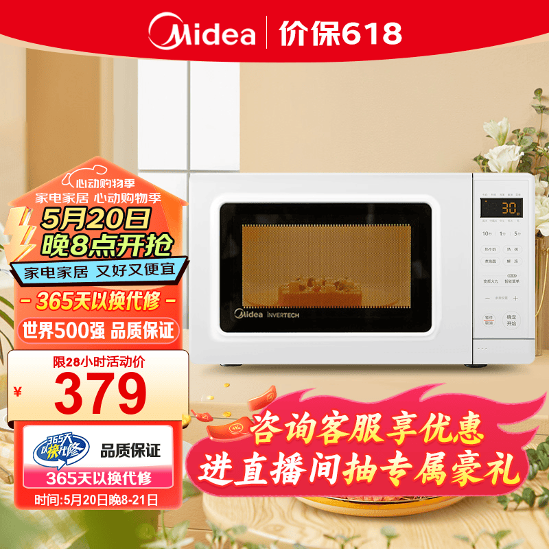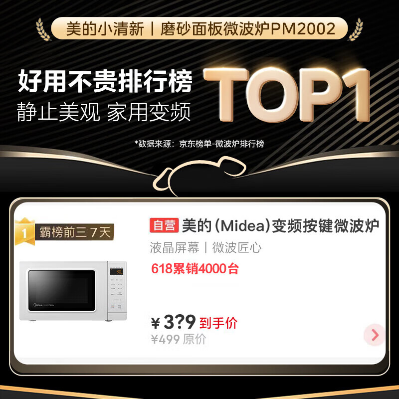 美的(Midea)变频小清新微波炉 液晶屏幕 磨砂面板 小型20L家用 匠心工艺(PM2002)价格:379.00元!