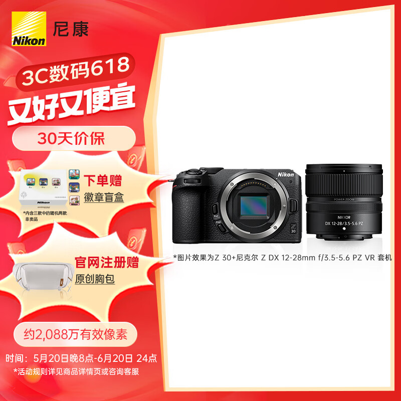 尼康(Nikon)Z 30 微单相机 微单机身 无反相机 半画幅(Z DX 12-28mm f/3.5-5.6 PZ VR)4K超高清视频价格:6299.00元!