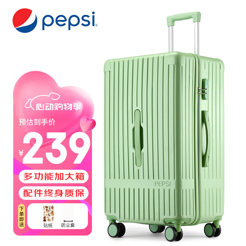百事(PEPSI)行李箱男超大容量拉杆箱女26英寸旅行箱大号万向轮学生托运密码箱价格:239.00元!