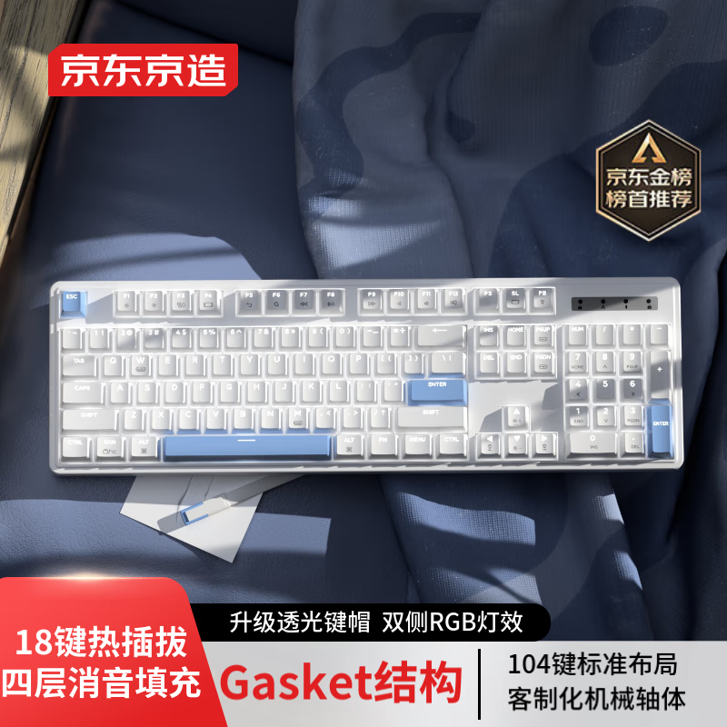 京东京造京东京造 J104有线机械键盘gasket结构18键热插拔客制化茶轴 游戏办公 海盐芝士 520礼物送男朋友价格:149.00元!