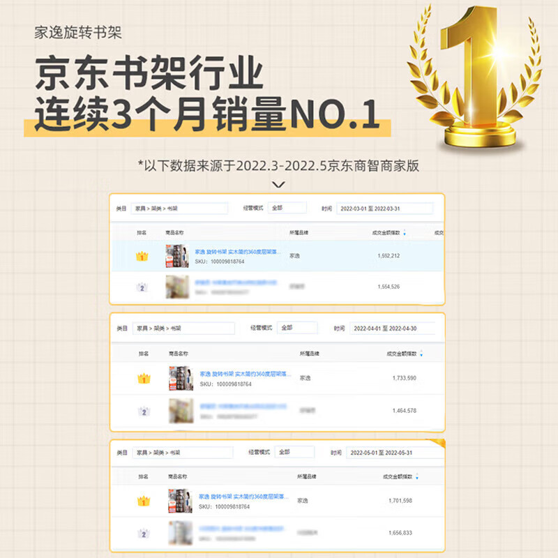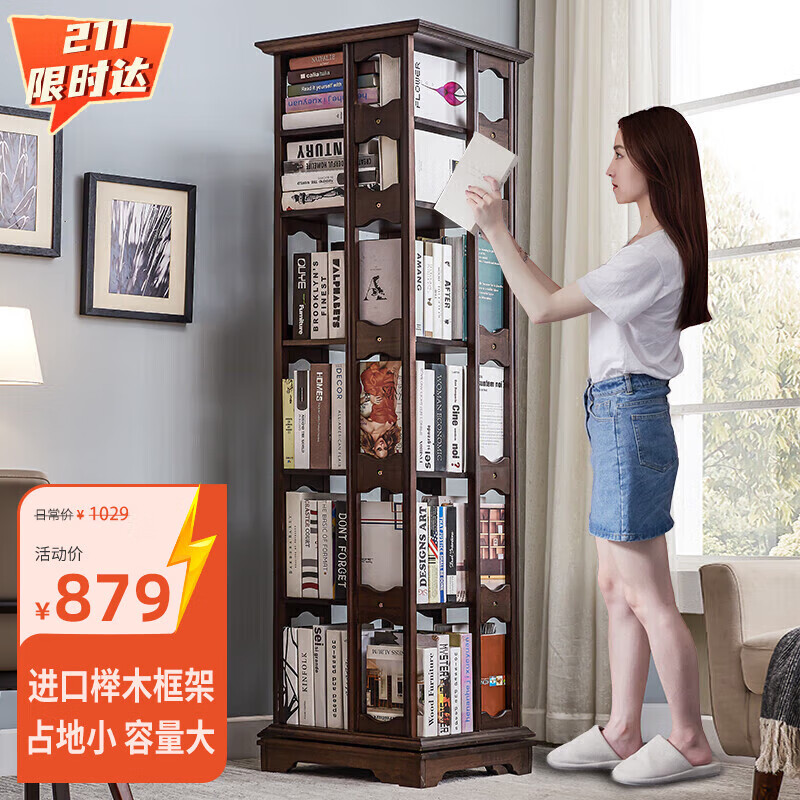家逸旋转书架落地实木书柜360度可旋转层架落地置物架收纳架加宽六层价格:1029.00元!