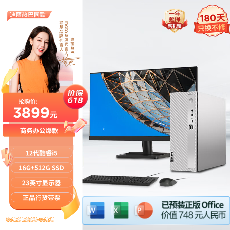 联想(Lenovo)天逸510S商务办公台式机电脑主机(酷睿12代i5-12400 16G 512G SSD win11)23英寸显示器价格:3899.00元!